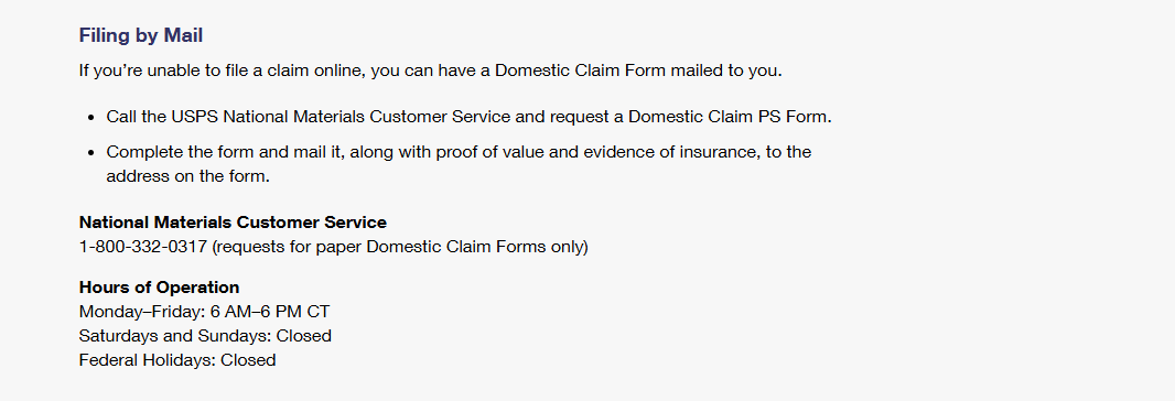 Often enough the online claims system does not work and we need to request a paper form and file by mail. This is for Domestic ONLY:
